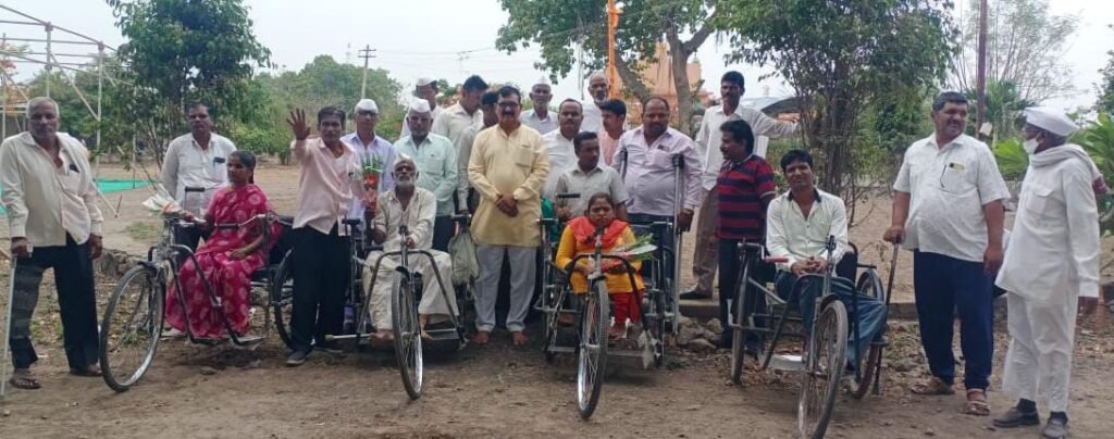 राहुरी तालुका प्रहारचे सचिव योगेश लबडे याच्या वाढदिवसाच्या निमित्ताने ब्राम्हणी शाखाध्यक्ष बाबूराव शिंदे सर याच्या अध्यक्षतेखाली पिंप्री अवघड शाखाध्यक्ष रामभाऊ पटारे याच्या सहकार्याने पाच दिव्यांग बांधवाना तीन चाकी सायकल व चार दिव्यांगाना कुबड्या देण्यात आल्या,वारकरी संप्रदाय तालुकाध्यक्ष माजी सरपंच बाळनाना बानकर याच्या शुभहस्ते वाटप करण्यात आले.
