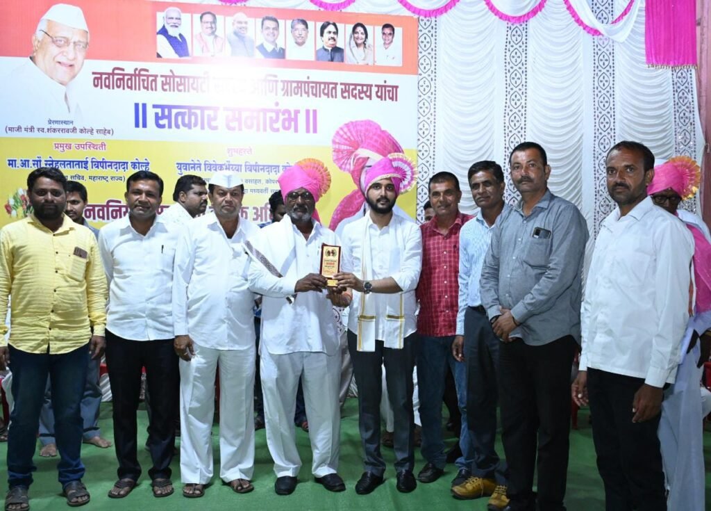 कोपरगाव विधानसभा मतदार संघाचे प्रलंबीत प्रश्न सोडविण्यासाठी पुन्हा नव्या जोमाने कामाला लागु असे सांगून त्यांनी सहकारी सोसायट्या आणि ग्रामपंचायती या ग्रामीण व्यवस्थेला बळकटी देणारा कणा आहे,त्याच्या संचालक पदाची ज्यांना संधी मिळाली त्यांनी गांव विकासात सर्वप्रथम लक्ष्य घालावे त्यातून प्रगतीचे एक -एक शिखरे पादाक्रांत करावी असेही ते म्हणाले.शेवटी सरपंच बाळासाहेब पानगव्हाणे यांनी आभार मानले.