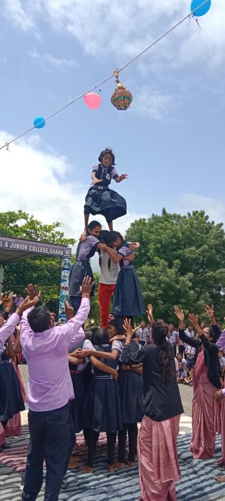 यावेळी संस्थेचे संस्थापक श्री संभाजी जाधव सर यांनी गोपालकाला या उत्सवाचे महत्त्व सांगून सर्व शिक्षक शिक्षकेतर कर्मचारी व विद्यार्थ्यांना शुभेच्छा दिल्या यानंतर विद्यार्थी व शिक्षकांनी ठरवून दिलेल्या हाऊस प्रमाणे दहीहंडीची स्पर्धा सुरू झाली यामध्ये मुलांच्या गटात अहिल्यादेवी हाऊसने तसेच मुलींच्या गटात ताराराणी हाऊसने बाजी मारली व प्रथम क्रमांक पटकावला यावेळी शाळेचे सर्व मैदान गोविंदाच्या नावाने दुमदुमून गेले होते व शेवटी शाळेतील एल के जी च्या वर्गातील विद्यार्थ्यांच्या हस्ते दहीहंडी फोडण्यात आली व त्यानंतर सर्व विद्यार्थ्यांना गोपालकाल्याचा प्रसाद वाटप करण्यात आला. शाळेचे मुख्याध्यापक श्री निळकंठ सर यांनी सर्व विजयी विद्यार्थ्यांचे व त्यांच्या हाऊस मास्टर व शिक्षकांचे अभिनंदन केले. यावेळी शाळेचे सर्व शिक्षक शिक्षकेतर कर्मचारी व विद्यार्थी उपस्थित होते.