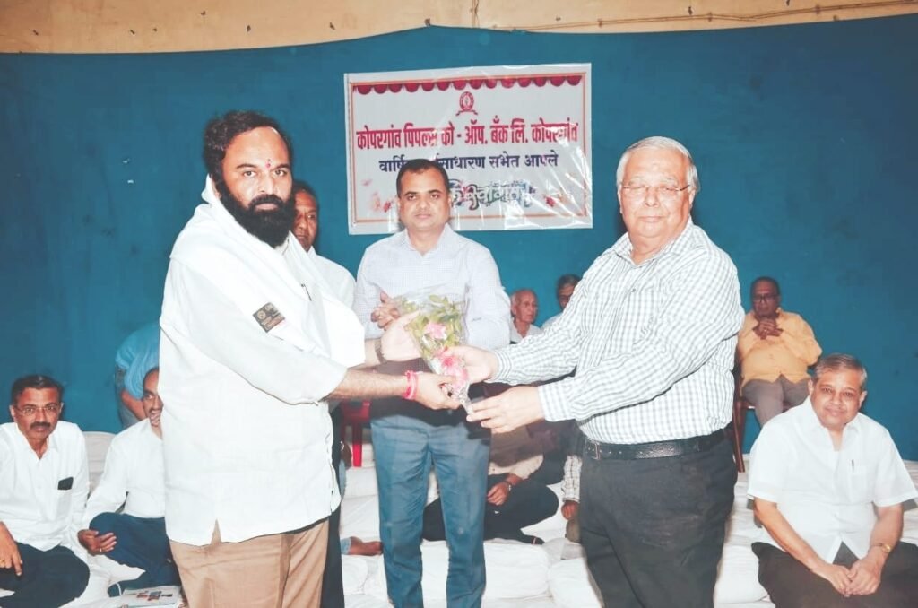 दि कोपरगाव पीपल्स को. ऑपरेटिव्ह बँकेचे माजी संचालक यांच्यावतीने माजी नगराध्यक्ष मंगेश पाटील यांनी त्यांच्या नगराध्यक्ष, गटनेता,नगरसेवक या कार्यकाळात केलेल्या शहर विकासासाठी केलेल्या कामाबद्दल त्यांचबरोबर कोपरगाव शहरासाठी स्वच्छ व पिण्यायोग्य पाणी मिळावे यासाठी येसगाव येथील ५ नंबर तळ्याचे काम व्हावे यासाठी केलेले आंदोलन व त्याचबरोबर ते करत असलेल्या सामाजिक कार्याची दखल घेऊन माजी. नगराध्यक्ष मंगेश पाटील यांना सकाळ उद्योग समूहाच्या तर्फे " सकाळ महाराष्ट्र आयोडॉल "पुरस्कराने सन्मानीत केले. त्याबद्दल रविवार दिनांक ११/९/२२ रोजी बँकेच्या ७४ व्या सर्वसाधारण सभे मध्ये जेष्ठ संचालक कैलासशेठ ठोळे यांच्या हस्ते त्यांचा सत्कार करण्यात आला .