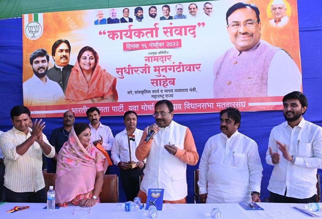 स्वातंत्र्यानंतर सेवेचे,देशाच्या प्रगतीचे विकासाचे राजकारण केले जात होते; पण मध्यंतरीच्या काळात विकासाचे राजकारण बाजूला पडून स्वार्थाचे राजकारण सुरू झाले.देशभक्तीचा विचार मागे पडला.परिवारभक्ती सुरू झाली;देशात अनेक परिवार निर्माण झाले.‘मेरा परिवारही मेरा देश है,’अशी भावना निर्माण झाली आणि याच विपरीत काळात विश्वगौरव नरेंद्रभाई मोदी यांच्या समर्थ नेतृत्वाखाली देशात प्रगतीचे,उन्नतीचे,जनसेवेचे पर्व सुरू झाले आहे.‘मेरा देशही मेरा परिवार है’ या भावनेतून पंतप्रधान नरेंद्रभाई मोदी हे देशवासीयांची सेवा करत आहेत. भारताला खूप मोठा सांस्कृतिक वारसा आहे.आपला देश संत,महंतांची भूमी आहे.बाकी पक्ष हे परिवाराचे पक्ष आहेत.भाजप हा एक परिवार आहे व हे या पक्षाचे वैशिष्ट्य आहे.आमचे एकच गोत्र आहे भारतमाता.काही लोक स्वत:चुका करून दुसऱ्याला दोष देत पक्ष कमजोर करण्याचे काम करत असतात.अशा लोकांपासून तुम्ही सावध राहा.भाजपचा विचार हा फक्त एका मतदारसंघापुरता मर्यादित नाही, तर तो विशाल आहे.आपल्याला देशभक्तीचा विचार पुढे नेत भारताला वैभवशाली बनवायचे आहे.पंतप्रधान नरेंद्र मोदी,केंद्रीय गृहमंत्री अमित शहा, भाजपचे राष्ट्रीय अध्यक्ष जे.पी.नड्डा यांनी सांगितल्याप्रमाणे बुथप्रमुख, शक्ती केंद्रप्रमुख व सर्व कार्यकर्त्यांनी भाजपला मजबूत करण्यासाठी प्रयत्न करावेत.ब्रिटनमध्ये नेलेली छत्रपती शिवाजी महाराजांची जगदंबा तलवार भारतात परत आणण्यासाठी आपण प्रयत्नशील असल्याचे ना.मुनगंटीवार म्हणाले.
