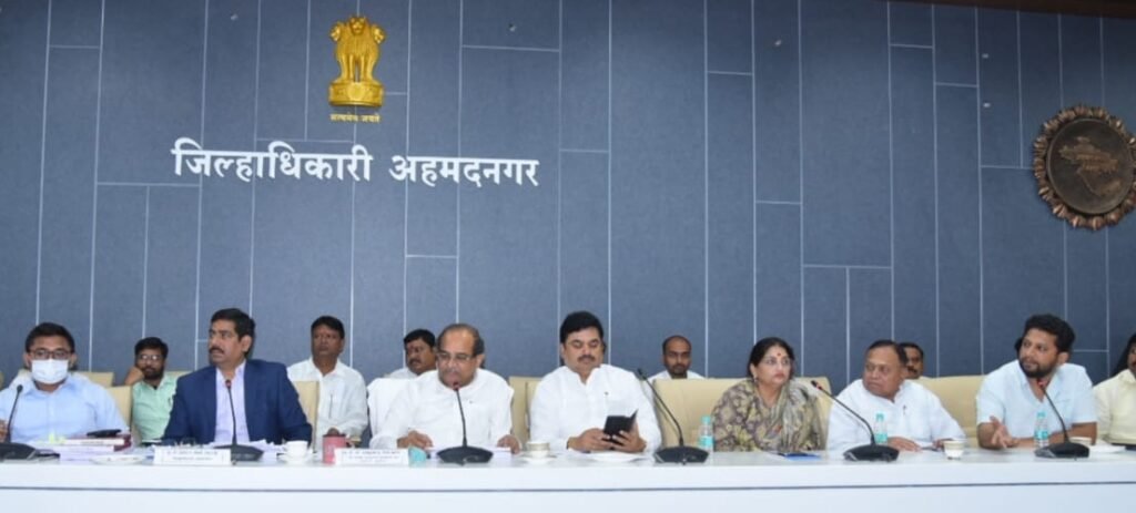 महसूल,पशुसंवर्धन व दुग्ध व्यवसाय विकासमंत्री तथा अहमदनगर जिल्ह्याचे पालकमंत्री राधाकृष्ण विखे पाटील यांच्या अध्यक्षतेखाली आज शनिवारी (१९ नोव्हेंबर) अहमदनगर येथे जिल्हाधिकारी कार्यालयात जिल्हा नियोजन वार्षिक योजनेसंदर्भात आढावा बैठक झाली.या बैठकीत जिल्ह्यातील विविध विकास कामांसंदर्भात आढावा घेण्यात आला. याप्रसंगी माजी आमदार बबनराव पाचपुते,प्रा.राम शिंदे,शिवाजीराव कर्डिले,स्नेहलताताई कोल्हे,वैभव पिचड,बाळासाहेब मुरकुटे,खा.डॉ. सुजय विखे पाटील,जिल्हाध्यक्ष अरूण मुंढे,जिल्हाधिकारी डॉ.राजेंद्र भोसले, जिल्हा परिषदेचे मुख्य कार्यकारी अधिकारी आशिष येरेकर,जिल्हा पोलिस अधीक्षक राकेश ओला यांच्यासह सर्व विभागांचे अधिकारी उपस्थित होते.