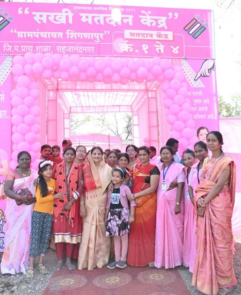 महिला ही नारी शक्ती आहे, मात्र अलिकडच्या काळावर तिच्यावर सातत्याने अत्याचाराच्या घटनात वाढ होत आहे,महिलांना निर्भयपणे शासकीय-निमशासकीय संकल्पनेत सहभाग देता यावा यासाठी देशाच्या निवडणुक आयोगाने लोकसभा- विधानसभा निवडणुकीत संपुर्ण भारतभर गुलाबी सखी मतदान केंद्राची संकल्पना राबवून महिलामध्ये त्यातून जनजागृती केली होती त्याच धर्तीवर आता ग्रामपंचायत निवडणुकीतही कोपरगांव तालुक्यात मौजे शिंगणापूर आणि माहेगांव देशमुख येथे गुलाबी रंगाचे सखी मतदान केंद्र रविवारी उभारण्यात आले असल्याची माहिती भाजपाच्या प्रदेश सचिव सौ.स्नेहलताताई कोल्हे यांनी दिली.जिल्हा बँकेचे संचालक विवेकभैय्या कोल्हे,सौ रेणुकाताई विवेक कोल्हे यांनीही सखी मतदान केंद्र संकल्पना जाणून घेतली.
