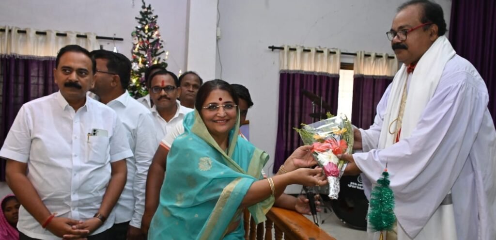 नाताळ ख्रिसमस सणानिमीत्त कोपरगाव शहर व तालुकावासियांना भाजपाच्यावतीने सदिच्छा देऊन शहरातील प्रत्येक नागरिकावर तसेच कोपरगांववासियावर ओढवलेल्या संकटातून मार्ग सापडू दे अशी प्रार्थना सौ.स्नेहलताताई कोल्हे यांनी पोलीस स्थानकाजवळील मेथोडिस्ट चर्च मध्ये केली,त्याप्रसंगी त्या बोलत होत्या. फादर अजय भोसले यांचा सत्कार करण्यांत आला.फादर अजय भोसले यांनी प्रभू येशूच्या आठवणींना उजाळा दिला.ख्रिश्चन समाजातील महिलांसह अनेक बांधवांनी रुग्णांच्या विविध आजारपणात केलेली मदत कदापि विसरता येणार नाही,कोपरगाव वर राहता फादरवाडी भागात ख्रिश्चन मिशनरीचे कार्य कौतुकास्पद आहे असेही सौ.स्नेहलताताई कोल्हे म्हणाल्या.