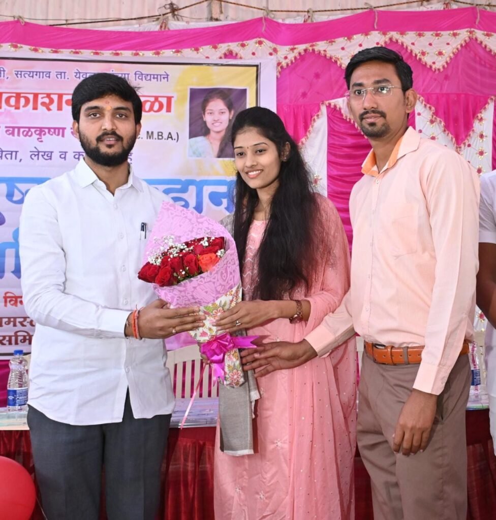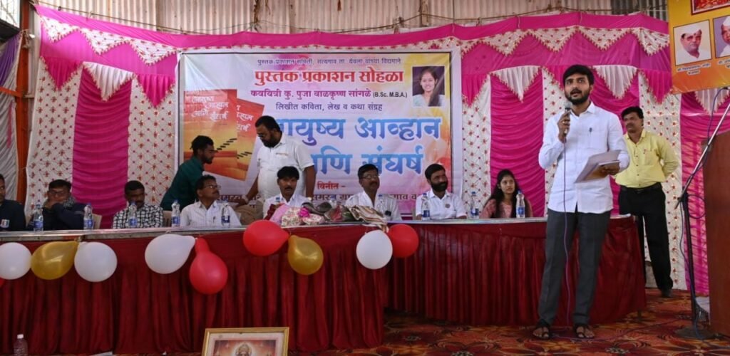 येवला तालुक्यातील सत्यगाव येथील कवयित्री पूजा बाळकृष्ण सांगळे यांनी लिहिलेल्या ‘आयुष्य, आव्हान आणि संघर्ष’ या पुस्तकाचे प्रकाशन गुरुवर्य प.पू.राजूबाबा सोनवणे (आजंदे) यांच्या हस्ते शनिवारी झाले.सत्यगाव येथील गावकऱ्यांनी आणि पुस्तक प्रकाशन समितीने पुढाकार घेऊन आयोजित केलेल्या या प्रकाशन सोहळ्यास विवेकभैय्या कोल्हे यांनी उपस्थित राहून लेखिका पूजा सांगळे यांना शुभेच्छा दिल्या.पूजा सांगळे यांचे हे पहिलेच पुस्तक असून,त्यांनी या पुस्तकातून आयुष्य,आव्हान आणि संघर्ष या विषयांची अत्यंत सुंदर मांडणी केली आहे.पूजा सांगळे यांनी अगदी लहान वयात पुस्तकलिहिण्याचे धाडस करून हे आव्हान यशस्वीरीत्या पेलले आहे,अशा शब्दांत विवेकभैय्या कोल्हे यांनी त्यांचे अभिनंदन केले.