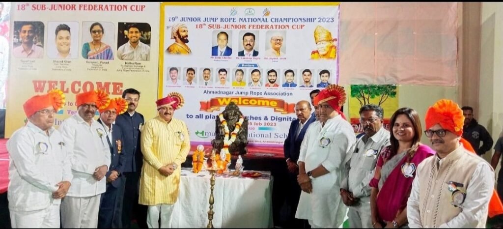 भारतीय जम्प रोप महासंघ, महाराष्ट्र राज्य जम्प रोप असोसिएशन,अहमदनगर जिल्हा जम्प रोप असोसिएशन यांच्या संयुक्त विद्यमाने अहमदनगर जिल्ह्यातील समता इंटरनॅशनल स्कूलमध्ये ३ फेब्रुवारी ते ५ फेब्रवारी २०२३ दरम्यान होणाऱ्या राष्ट्रीय जम्प स्पर्धेचे उद्घाटन कोपरगाव तालुक्याचे आमदार श्री.आशुतोष काळे,सिंदखेडराजा येथील लखुजीराजे जाधव यांचे १६ वे वंशज श्री.शिवाजीराजे जाधव यांच्या हस्ते छत्रपती शिवाजी महाराजांच्या प्रतिमेचे प्रतिमापूजन व दिप प्रज्वलन करून उद्घाटन करण्यात आले.उद्घाटक आणि प्रमुख पाहुण्यांचा परिचय समता स्कूलचे उपप्राचार्य श्री समीर आत्तार यांनी करून दिला.