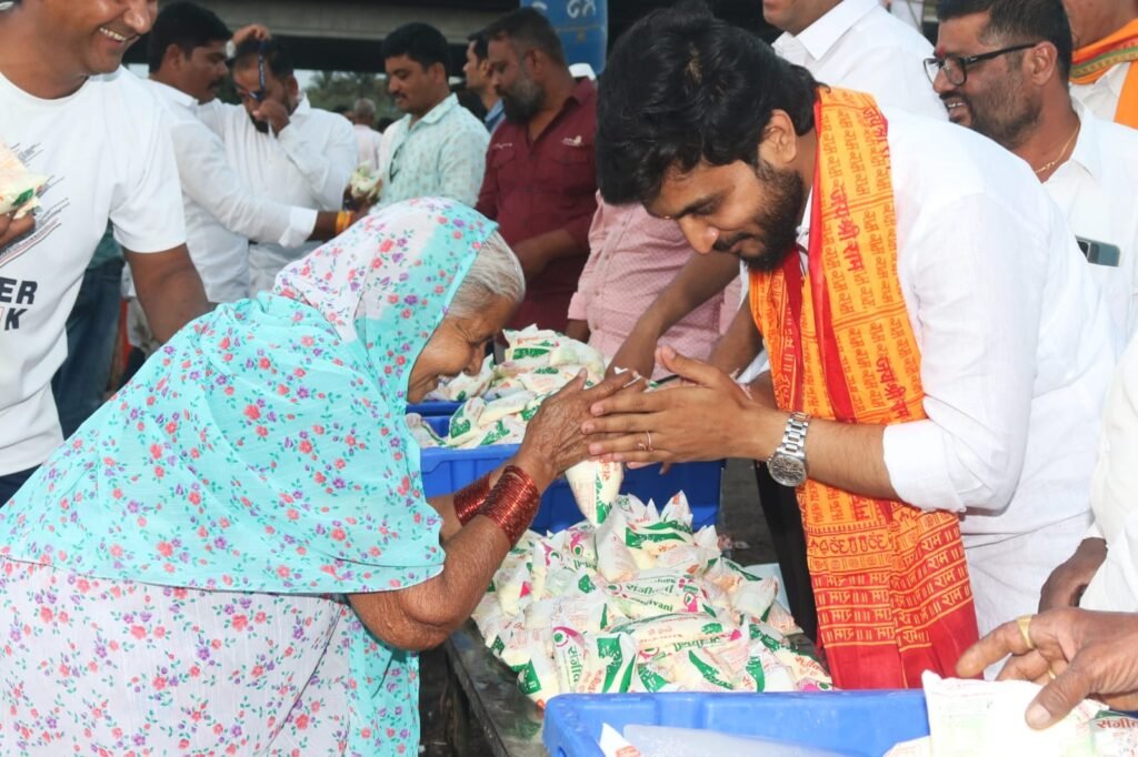 कोपरगावहून नगर-मनमाड महामार्गावरून शिर्डीला निघालेल्या श्री साई गाव पालखीसोबत हजारो स्री-पुरुष भाविक-भक्त पायी चालत होते.साई परिक्रमेसाठी शिर्डीला निघालेल्या या भाविकांना संजीवनी युवा प्रतिष्ठानच्या वतीने नगर-मनमाड महामार्गावर समृद्धी महामार्ग सर्कल येथे सहकारमहर्षी शंकरराव कोल्हे सहकारी साखर कारखान्याचे अध्यक्ष तथा अहमदनगर जिल्हा मध्यवर्ती सहकारी बँकेचे संचालक व संजीवनी युवा प्रतिष्ठानचे अध्यक्ष विवेकभैय्या कोल्हे यांनी सुगंधित दुधाचे वाटप करून सर्वांना राम नवमीच्या शुभेच्छा दिल्या.तसेच भाविकांसोबत नृत्य करत त्यांचा उत्साह वाढवला.शिर्डी येथे श्री साई परिक्रमेसाठी व पालखी सोहळ्यासाठी गेलेल्या हजारो भाविकांनी या सुगंधित दुधाचा आस्वाद घेतला आणि संजीवनी युवा प्रतिष्ठानच्या सामाजिक लोकोपयोगी उपक्रमांचे कौतुक केले.यावेळी संजीवनी युवा प्रतिष्ठानचे सर्व युवा सेवक,संजीवनी उद्योग समूहाशी संलग्न विविध संस्थांचे पदाधिकारी,सहकार महर्षी शंकरराव कोल्हे सहकारी साखर कारखान्याचे आजी- माजी संचालक, नगरसेवक,भाजप,भाजयुमोचे पदाधिकारी,कार्यकर्ते आणि भाविक मोठ्या संख्येने उपस्थित होते.