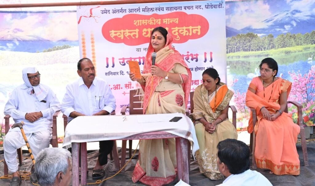 संजीवनी महिला स्वयंसहाय्यता बचत गटाच्या माध्यमातून कोपरगाव तालुक्यात मोठ्या प्रमाणावर महिला बचत गटांची स्थापना करण्यात आली आहे.या महिला बचत गटांच्या माध्यमातून महिलांना स्वयंरोजगार उपलब्ध करून देण्याबरोबरच आर्थिकदृष्ट्या स्वावलंबी बनवण्याचे काम मोठ्या प्रमाणात सुरू आहे.धोंडेवाडी येथे नव्याने सुरू झालेले हे सरकारमान्य स्वस्त धान्य दुकान आदर्श महिला स्वयंसहाय्यता बचत गटामार्फत चालविण्यात येणार आहे.या स्वस्त धान्य दुकानामुळे गावकऱ्यांना शासकीय दरात धान्य उपलब्ध होणार आहे. मुख्यमंत्री एकनाथ शिंदे व उपमुख्यमंत्री देवेंद्र फडणवीस यांच्या सरकारने गोरगरीब कुटुंबांची दिवाळी गोड करण्यासाठी अवघ्या १०० रुपयांत एक लिटर पामतेलासह प्रत्येकी एक किलो रवा, साखर आणि हरभरा डाळ असा आनंदाचा शिधा रेशन दुकानाच्या माध्यमातून वितरीत केला होता.आता भारतरत्न डॉ.बाबासाहेब आंबेडकर यांच्या जयंतीचे औचित्य साधून पुन्हा एकदा १०० रुपयांत आनंदाचा शिधा वाटप करण्याचा निर्णय शिंदे-फडणवीस सरकारने घेतला असून,यामध्ये प्रत्येकी एक किलो रवा,हरभरा डाळ,साखर,एक लिटरची पामतेलाची पिशवी असे किट दिले जाणार आहे.याचा गरजू नागरिकांनी लाभ घ्यावा,असे आवाहन स्नेहलताताई कोल्हे यांनी केले.