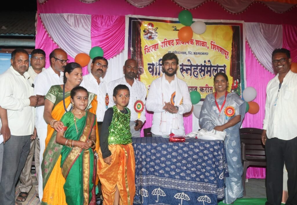शिंगणापूर ही माजी मंत्री सहकारमहर्षी स्व. शंकरराव कोल्हे साहेबांची कर्मभूमी म्हणून ओळखली जाते. स्व.कोल्हे साहेबांनी केवळ शिंगणापूर परिसरातच नव्हे तर संपूर्ण कोपरगाव विधानसभा मतदारसंघात अनेक विकासकामे करून शेतकऱ्यांच्या जीवनात आर्थिक समृद्धी आणली आहे. वार्षिक स्नेहसंमेलनाच्या माध्यमातून विद्यार्थांना त्यांचे कलागुण दाखविण्या साठी एक व्यासपीठ उपलब्ध होते.शिंगणापूर येथील जिल्हा परिषद प्राथमिक शाळेत पुढील काळात आदर्श असे स्नेहसंमेलन आयोजित करावे.त्यासाठी आपण सर्वतोपरी सहकार्य करू,अशी ग्वाही विवेकभैय्या कोल्हे यांनी दिली.