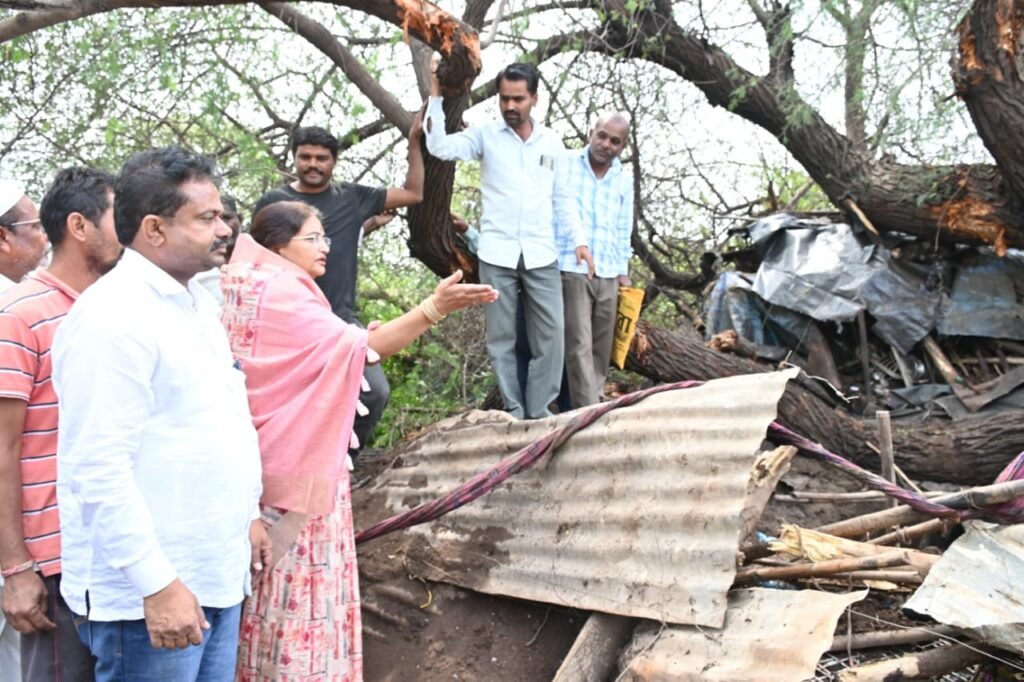 कोपरगाव तालुक्यात शुक्रवारी सायंकाळी जोरदार वाऱ्यासह झालेल्या अवकाळी पावसामुळे अनेक ठिकाणी राहत्या घरांचे व पिकांचे मोठ्या प्रमाणात नुकसान झाले.रवंदे परिसरातील सहाचारी येथे घरावर बाभळीचे झाड पडून दत्तात्रय संजय मोरे (वय २९ वर्षे) या तरुणाचा मृत्यू झाला.माजी आमदार तथा भाजपच्या प्रदेश सचिव स्नेहलताताई कोल्हे यांनी मृत दत्तात्रय मोरे यांच्या कुटुंबीयांची भेट घेऊन सांत्वन केले. तसेच तहसीलदार विजय बोरूडे यांना फोन करून अवकाळी पावसाने झालेल्या नुकसानीचे तातडीने पंचनामे करा आणि मृत दत्तात्रय मोरे यांच्या कुटुंबीयांना शासनाकडून ताबडतोब आर्थिक मदत मिळवून द्यावी,अशा सूचना स्नेहलताताई कोल्हे यांनी दिल्या.