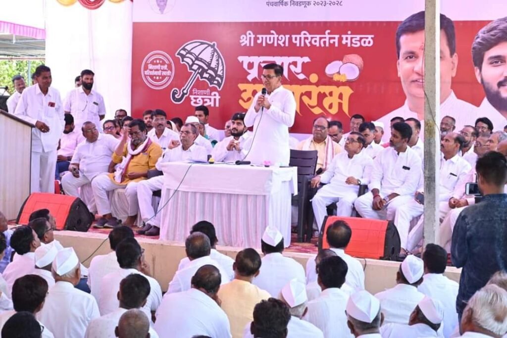 प्रारंभी श्री गणेश परिवर्तन मंडळाच्या सर्व उमेदवारांनी आपला परिचयकरून दिला.या निवडणुकीतून माघार घेऊन श्री गणेश परिवर्तन मंडळाला पाठिंबा देणारे उमेदवार अशोक दंडवते, बालाजी थेटे,सूर्यभान गोर्डे,गजानन फोपसे,वैशाली क्षीरसागर,दिलीप क्षीरसागर,उमाकांत धनवटे,दीपक डोके,गजाप्पा गाढवे,बाळासाहेब पाळंदे,राहुल गाढवे,बलराज धनवटे, भीमराज रकटे,चंद्रकांत डोके, साहेबराव बनकर,अण्णासाहेब वाघे, नानासाहेब शेळके, सुनील थोरात, वसंत गायकवाड,अण्णासाहेब सातव आदींचा बाळासाहेब थोरात व विवेकभैय्या कोल्हे यांच्या हस्ते सत्कार करण्यात आला.सचिन चौगुले यांनी लक्षवेधी कविता सादर केली.यावेळी गंगाधरनाना चौधरी,बाभळेश्वर दूध संघाचे अध्यक्ष सुधीर म्हस्के, बाबासाहेब डांगे,दादासाहेब गाढवे, एकनाथ घोगरे,अशोकराव दंडवते, रामभाऊ बोरभणे,भीमराव लहारे, चंद्रभान धनवटे,धनंजय गाडेकर, उत्तमराव घोरपडे,निर्मळ तात्या, अनिल शेळके,महेंद्र शेळके आदींसह गणेश परिवर्तन मंडळाचे सर्व उमेदवार, गणेश परिसरातील सभासद शेतकरी, कार्यकर्ते व नागरिक मोठ्या संख्येने उपस्थित होते.