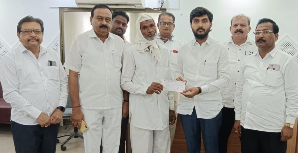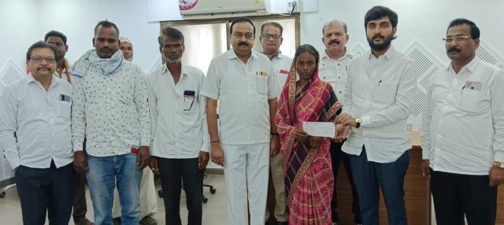 सहकारमहर्षी शंकरराव कोल्हे सहकारी साखर कारखान्याचे दोन उसतोडणी कामगारांच्या वारसांना सहा लाख रूपये विमा धनादेश प्रदान-विवेकभैय्या कोल्हे.