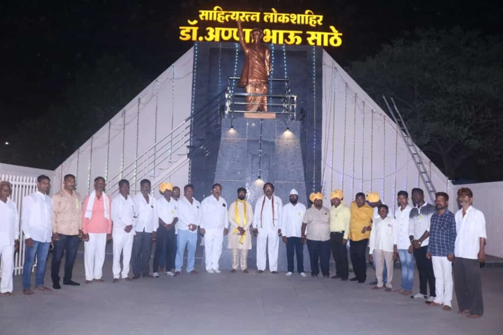 कोपरगाव : साहित्यरत्न,लोकशाहीर डॉ.आण्णाभाऊ साठे यांच्या १०३ व्या जयंती निमित्त कोपरगाव तालुक्यातील क्रांतीगुरु सोशल फाउंडेशन आणि विराट प्रतिष्ठान कोपरगाव शाखेच्या वतीने शाखा अध्यक्ष श्री.अनिल भोलेनाथ पगारे यांच्या मार्गदर्शना खाली महाराष्ट्राचे लाडके गायक रणजित खडांगळे व नानाभाऊ वीर यांचे सुर संगीतमय गायन,लावणी सम्राट किरण कोरे यांचा सदाबहार लावणीचा कार्यक्रम आयोजित करण्यात आला होता.