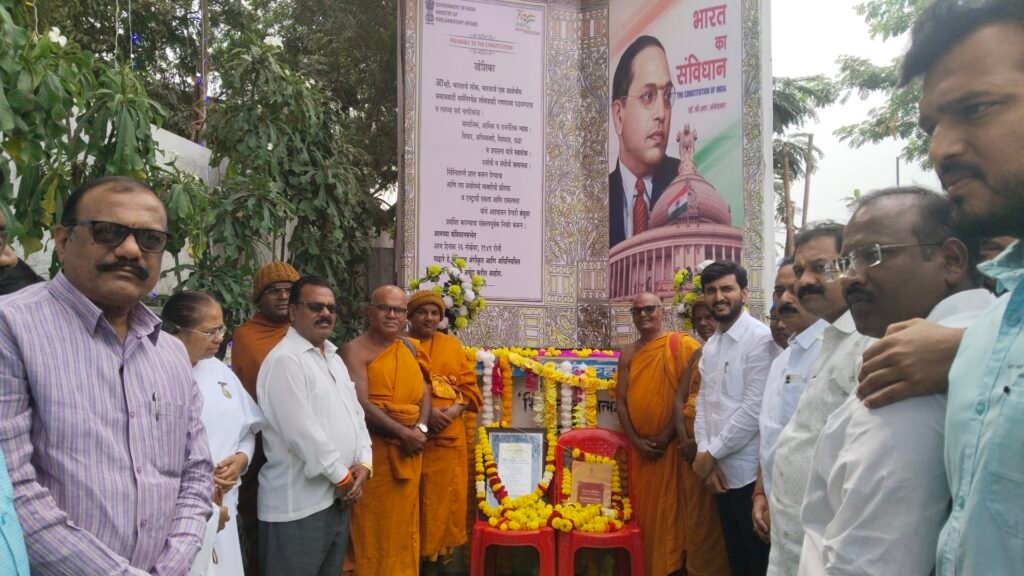 रॅलीच्या अग्रभागी भारतरत्न डॉ. बाबासाहेब आंबेडकर व भारतीय संविधानाची प्रतिमा सजवलेल्या वाहनात ठेवण्यात आली होती.तिरंगा ध्वज फडकावत भारतरत्न डॉ. बाबासाहेब आंबेडकर व भारतीय संविधानाचा विजय असो,अशा घोषणा देत निघालेल्या या रॅलीमध्ये डॉ. बाबासाहेब आंबेडकर,महात्मा गांधी,नेताजी सुभाषचंद्र बोस व अन्य महापुरुषांच्या वेशभूषेत सहभागी झालेली मुले तसेच विविध खेळ सादर करणाऱ्या मुला-मुलींनी नागरिकांचे लक्ष वेधून घेतले होते.संविधान चौक, टिळकनगर येथून निघालेली ही रॅली गांधीनगर रोड,गांधी चौक,छत्रपती शिवाजी महाराज स्मारक मार्गे डॉ.बाबासाहेब आंबेडकर स्मारक येथे पोहोचल्यानंतर तेथे रॅलीचा समारोप झाला.