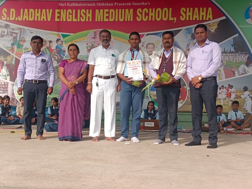 आदरणीय श्री संभाजी जाधव सर यांच्या हस्ते व सौ.शुभांगीताई जाधव यांच्या प्रमुख उपस्थितीत तसेच त्यास प्रशिक्षण देणारे शाळेचे क्रीडा