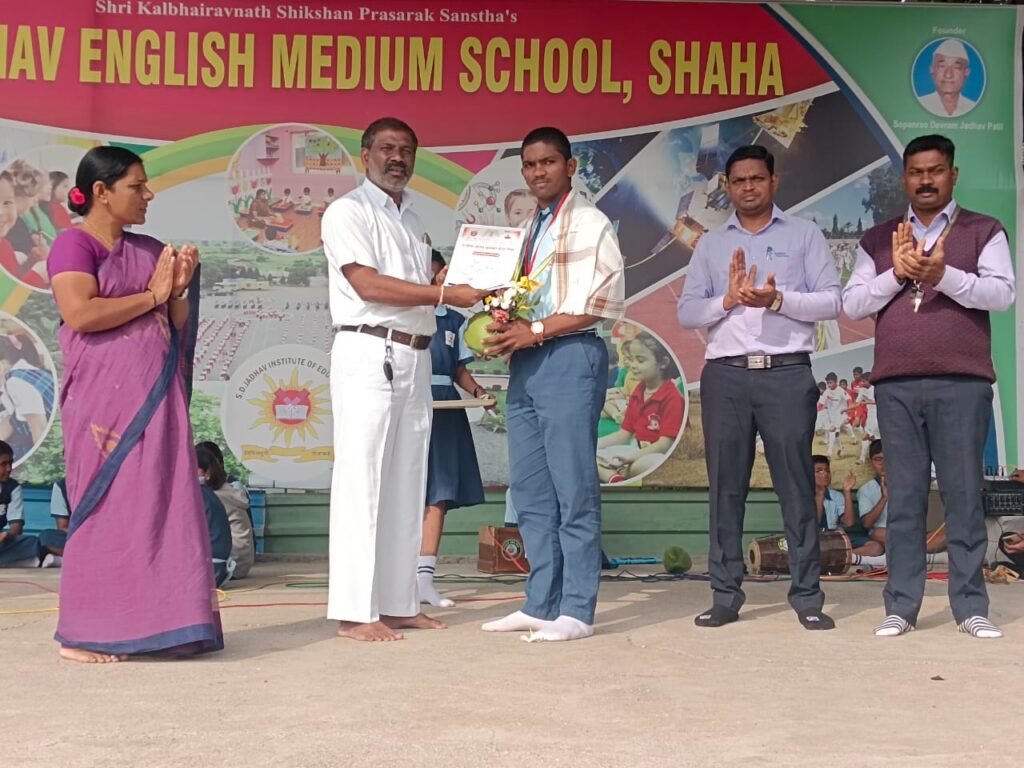 ग्रामीण भागातील मुले -मुली ही शिक्षणाबरोबरच क्रिडा क्षेत्रामध्ये असलेल्या विविध स्पर्धामध्ये सहभाग घेऊन गरूडझेप घेतल्याशिवाय राहत नाही हे एस.डी.जाधव इंग्लिश मिडियम स्कूलचा विद्यार्थी ओम गणेश सोमवंशी याने राज्यस्तरीय बॉविसंग स्पर्धेत तिसरा क्रमांक मिळवत ब्रांझ मेडल पटकावत भावी विद्यार्थ्यांसमोर एक असा आदर्श ठेवला कि, शहरातील विद्यार्थ्याप्रमाणेच ग्रामीण भागातील विद्यार्थी सुद्धा स्पर्धा परिक्षेत कोठेही कमी नाही. त्याच्या या यशाबद्दल श्री कालभैरवनाथ शिक्षण प्रसारक संस्थेचे,एस.डी.जाधव इंग्लिश मिडियम स्कूलचे संस्थापक