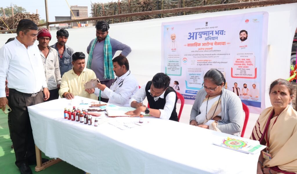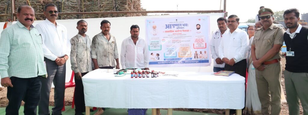 संवत्सर प्राथमिक आरोग्य केंद्र अंतर्गत उप केंद्राचे समुदाय आरोग्य अधिकारी डॉ.कृष्णा पवार यांनी आयुष्यमान भव अभियान अंतर्गत असंसर्गजन्य आजार,संसर्गजन्य आजार,माता बाल आरोग्य लसीकरण पोषण सल्ला,कान नाक घसा सिकलसेल,दंतरोग, उपशामक सेवा,नेत्ररोग, त्वचा आजार तपासणी निदान उपचार संदर्भ सेवा,आभा कार्ड,आयुष्यमान कार्ड नोंदणी व वितरण या सर्व उपक्रमाबाबत जनजागृती करत उपस्थित सर्वं उस तोडणी कामगार,महिला,चालक वाहक आदिंची आरोग्य तपासणी करून त्यांना मोफत गोळया औषधांचे वाटप केले.