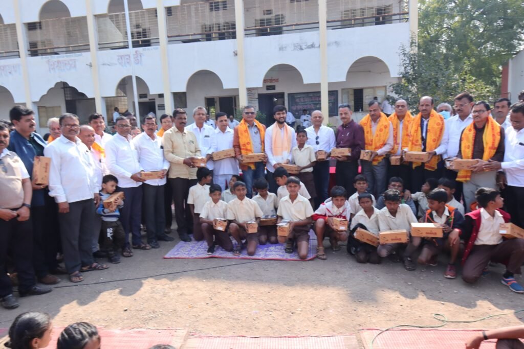 यावेळी विद्यार्थांना बुट आणि सॉक्स वाटप करण्यात आले.विविध क्षेत्रातील यश संपादन केलेल्या विद्यार्थी व सेवकांचा सन्मान यावेळी मान्यवरांच्या हस्ते पार पडला.
