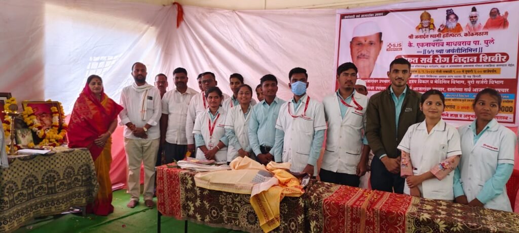 या शिबिरात श्री जनार्दन स्वामी हॉस्पिटलचे डॉ.लक्ष्मण बागडे,डॉ. सायली ठोंबरे,डॉ.भोईर,डॉ.भाकरे,डॉ.उबाळे,डॉ.मेहरबानसिंग पोथीवाल,डॉ. हकील, डॉ.कुलकर्णी आदी अनुभवी व तज्ज्ञ डॉक्टरांनी रक्तदाब,मधुमेह,ई. सी.जी. मेंदू व मणक्याचे विकार,स्लीप डिस्क,पाठदुखी,गुडघेदुखी,नेत्र विकार, मूतखडा,स्त्रियांचे सर्व प्रकारचे आजार,हृदय विकार,अस्थमा,क्षयरोग, दातांचे आजार,आतड्यांचे सर्व प्रकारचे आजार,छाती दुखणे,छाती,जठर, अन्ननलिका,आतडे,मूत्रपिंड,मूत्राशय, थायरॉईड,तोंडाचा कॅन्सर,प्लॅस्टिक सर्जरी आदी रोगांची मोफत तपासणी करून योग्य ते औषधोपचार केले. यावेळी रुग्णांना मोफत औषधी वाटप करण्यात आली.या शिबिरात कुंभारी व पंचक्रोशीतील असंख्य नागरिकांनी सहभागी होऊन शिबिराचा लाभ घेतला.सूत्रसंचालन वाल्मीक नीळकंठ व अतुल नीळकंठ यांनी केले.