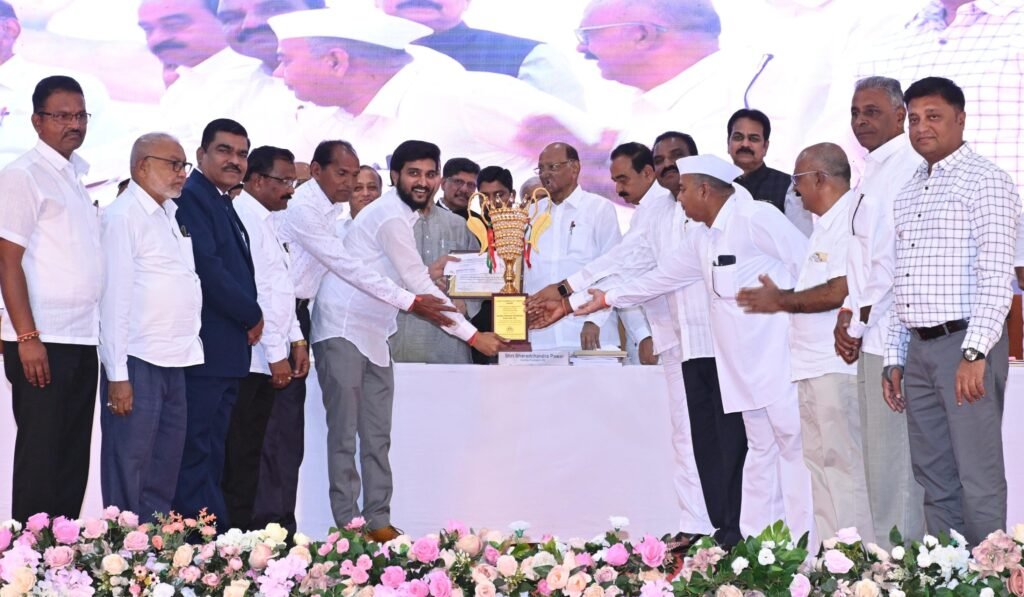 कोपरगाव : सहकार क्षेत्रात साखर उद्योगात सातत्याने नाविन्यपुर्ण प्रयोग करून आधुनिकीकरणांची कास धरत उल्लेखनीय कार्य केल्याबददल सहकारमहर्षी शंकरराव कोल्हे सहकारी साखर कारखान्यांस वसंतदादा शुगर इन्स्टीटयुट यांच्या वतीने राज्य स्तरावरील सर्वोत्कृष्ट उद्योजकता पुरस्कार माजी केंद्रीय कृषीमंत्री शरद पवार,सहकारमंत्री दिलीपराव वळसे,महासंचालक संभाजीराव कडु यांच्या हस्ते कारखान्याचे युवा अध्यक्ष विवेकभैय्या कोल्हे व संचालक मंडळास मांजरी पुणे येथे गुरूवारी प्रदान करण्यांत आला.