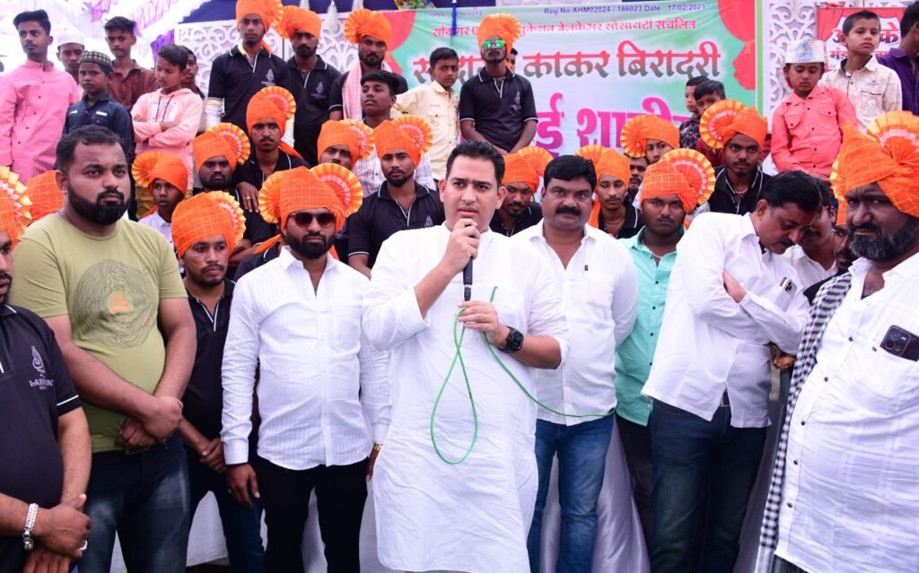 भोजडे येथे सौदागर एकता वेलफेअर सोसायटी संचलित सौदागर काकर बिरादरी याच्या वतीने आयोजित करण्यात आलेल्या सामुदायिक विवाह सोहळ्या प्रसंगी आ.आशुतोष काळे यांनी उपस्थित राहून नवदाम्पत्यांना शुभेच्छा दिल्या याप्रसंगी ते बोलत होते.प्रत्येक समाजाने असे सामुदायिक विवाहाचे कार्यक्रम करणे गरजेचे असून त्यामुळे मोठ्या प्रमाणात आर्थिक खर्च वाचतो.सौदागर एकता वेलफेअर सोसायटीच्या वतीने सामुदायिक विवाह सोहळ्यासारखा स्तुत्य उपक्रम राबवल्याबद्दल आ.आशुतोष काळे यांनी सोसायटीच्या सर्वच सदस्यांचे कौतुक केले.
