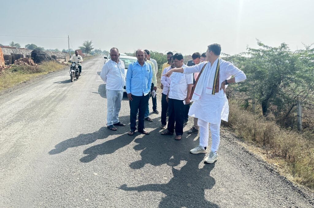 रा.मा.७ वरील मोर्विस सात मोऱ्या जिल्हा हद्द ते शहाजापूर रस्त्याची पाहणी करतांना आ.आशुतोष काळे.