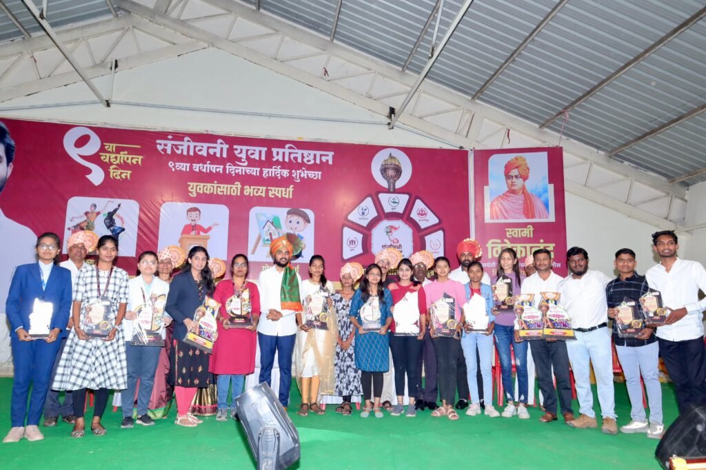 या शानदार समारंभात कोपरगाव शहराचा पाणी प्रश्न सुटण्यासाठी पंतप्रधान कार्यालयाकडून कार्यवाही पूर्ण करून घेण्यात मोलाचे योगदान देणारे राजेश बन्सीलाल मंटाला,गरजू व होतकरू विद्यार्थ्यांना उच्च शिक्षणासाठी ५४ लाख रुपयांची मदत करणारे हेल्पिंग हॅंडस या संस्थेचे प्रमुख चार्टर्ड अकाऊंटंट दत्तात्रय खेमनार (सामाजिक),विविध जटील शस्त्रक्रिया यशस्वीरीत्या करून अनेक रुग्णांना जीवदान देणारे डॉ.मयूर अण्णासाहेब तिरमखे (आरोग्य),धामोरी येथील प्रगतिशील शेतकरी अशोकराव दशरथ भाकरे (कृषी),शिवछत्रपती क्रीडा पुरस्कार प्राप्त खेळाडू अक्षय आव्हाड, ‘झी मराठी’वाहिनीवरील ‘सारेगमप लिटिल चॅम्पस्-२०२३’ या स्पर्धेची विजेती ब्राह्मणगावची बालगायिका गौरी पगारे, एमपीएससी परीक्षेत यश मिळवलेली पूजा गवळी,नीलिमा नानकर आदींचा विवेकभैय्या कोल्हे यांच्या हस्ते सन्मानचिन्ह,शाल व बुके देऊन विशेष गौरव करण्यात आला. यावेळी नृत्य विशारद ऋतुजा धनेश्वर, परीक्षक अमोल निर्मळ यांचाही सत्कार करण्यात आला.तसेच वक्तृत्व व पोस्टर स्पर्धेतील विजेत्यांना विवेकभैय्या कोल्हे व सत्कारमूर्तींच्या हस्ते पारितोषिक वितरण करण्यात आले.प्रारंभी मान्यवरांच्या हस्ते दीप प्रज्वलन करून स्वराज्य जननी राजमाता जिजाऊ माँसाहेब,थोर विचारवंत स्वामी विवेकानंद व माजी मंत्री सहकारमहर्षी स्व.शंकरराव कोल्हे साहेब यांच्या प्रतिमेचे पूजन करून अभिवादन करण्यात आले.संजीवनी युवा प्रतिष्ठानच्या कार्यावर आधारित डॉक्युमेंटरी दाखविण्यात आली.