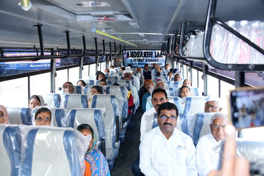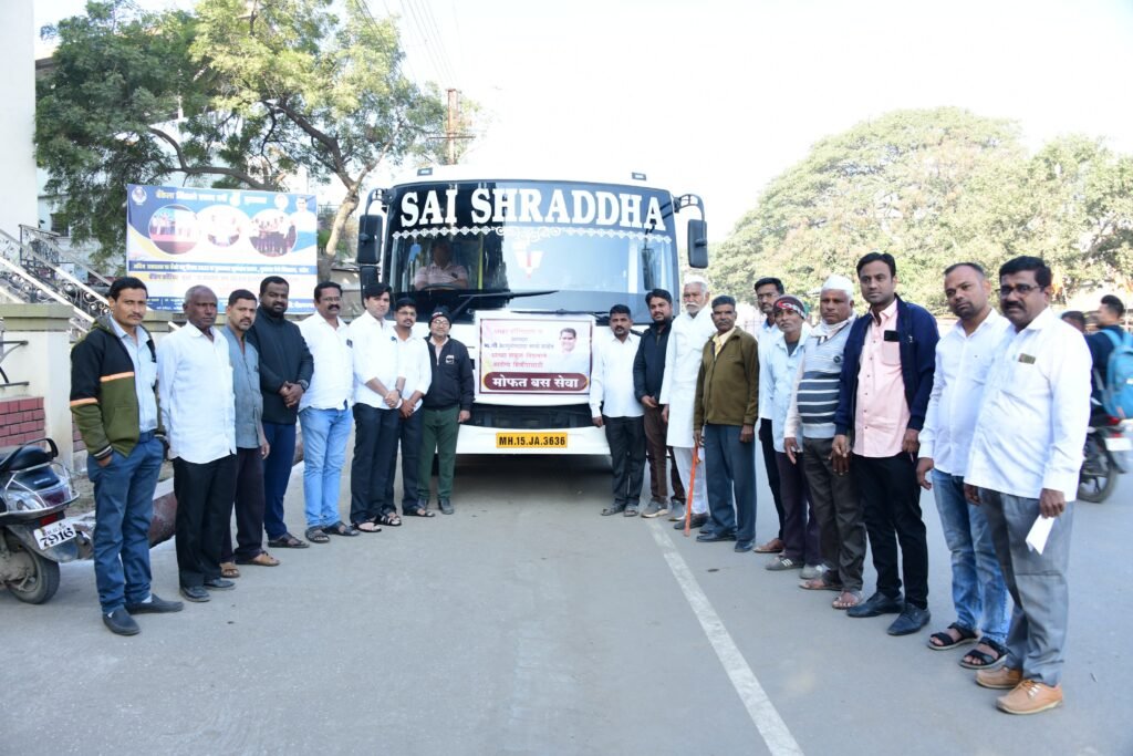 आ.आशुतोष काळे यांच्या मोफत बस सेवेच्या माध्यमातून घोटी येथील एस.एम.बी.टी.हॉस्पिटलमध्ये मोफत तपासणी व उपचारासाठी निघालेले रुग्ण.