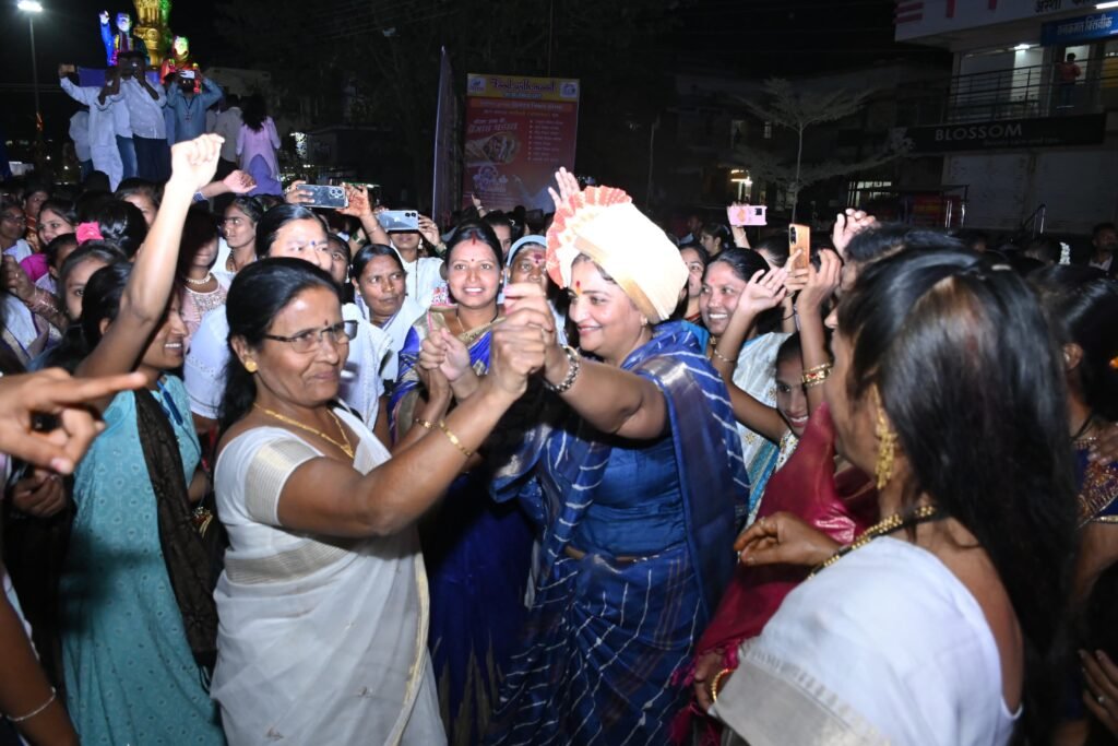 यावेळी स्नेहलताताई कोल्हे यांनी महिलांसोबत फुगडी खेळत नृत्य केले. विवेकभैय्या कोल्हे यांनी ‘तुम्ही खाता त्या भाकरीवर,आपण खातो त्या भाकरीवर बाबासाहेबांची सही हाय र…’ व इतर भीमगीतांच्या तालावर भीमसैनिक व कार्यकर्त्यांसमवेत सुंदर नृत्य करून मिरवणुकीत रंगत आणली.
