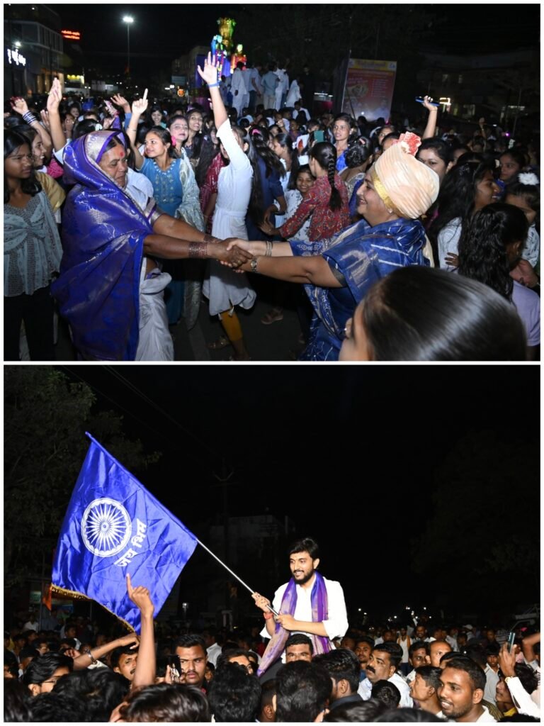 कोपरगाव : भारतीय राज्यघटनेचे शिल्पकार भारतरत्न महामानव डॉ. बाबासाहेब आंबेडकर यांना आयुष्यात मोलाची साथ देणाऱ्या त्यांच्या पत्नी,त्यागमूर्ती माता रमाई यांची जयंती बुधवारी (७ फेब्रुवारी) कोपरगाव शहरात मोठ्या उत्साहात व जल्लोषात साजरी करण्यात आली.माता रमाई यांच्या जयंतीनिमित्त शहरातकाढण्यात आलेल्या भव्य मिरवणुकीत माजी आमदार स्नेहलताताई कोल्हे यांनी सहभागी होऊन महिलांसोबत फुगडी खेळली,नृत्य केले,तर सहकारमहर्षी शंकरराव कोल्हे सहकारी साखर कारखान्याचे अध्यक्ष युवा नेते विवेकभैय्या कोल्हे यांनीही भीम गीतांच्या तालावर शानदार नृत्य करून समाजबांधवांचा उत्साह वाढवला.प्रारंभी स्नेहलताताई कोल्हे व विवेकभैय्या कोल्हे यांनी भारतरत्न महामानव डॉ.बाबासाहेब आंबेडकर व त्यागमूर्ती माता रमाई यांच्या प्रतिमेचे पूजन करून विनम्र अभिवादन केले.तसेच माता रमाई यांच्या जयंतीनिमित्त सर्व दलित,बौद्ध समाजबांधव,माता- भगिनींना हार्दिक शुभेच्छा दिल्या.