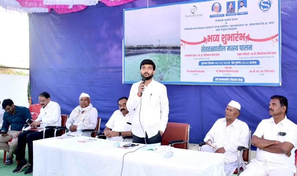 श्री.विवेकभैय्या कोल्हे पुढे म्हणाले की,संजीवनी फार्मर्स फोरम स्वतःच दर्जेदार मत्स्यबीज तयार करून ते शेतक-यांना पुरविणार आहे.त्याबाबतचे सर्व शिक्षण एकाच छताखाली देवुन शेततळयातील उत्पादीत मत्स्य विक्रीसाठीचेही मार्गदर्शन देणार आहे.मुक्त अर्थव्यवस्थेमुळे सर्वत्र स्पर्धा सुरू झाली आहे.त्या स्पर्धेला येथील शेतकरी सामोरा जावा त्याचे प्रति एकरी उत्पन्न वाढावे यासाठी माजीमंत्री स्व.शंकरराव कोल्हे यांनी जाणिवपुर्वक प्रयत्न करत संजीवनी उद्योग समुहा अंतर्गत विविध संस्थांची स्थापना केली,सहकारातुन प्रगती साधली त्याच पावलावर पाउल ठेवुन बिपीनदादा कोल्हे यांनीही शेती व शेतकरी फायद्यासाठी पुढाकार घेत विविध उद्योगांना प्रोत्साहन दिले.युवकांनी शेती करताना ती व्यवसायभिमुख कशी होईल याचा प्रयत्न करावा.आज कित्येक मुले मुली उच्चशिक्षीत अभियंते असुन त्यांनी शेतीतआधुनिक तंत्रज्ञानाचा अवलंब करावा.शेतीला असंख्य जोडधंद्याची उभारणी केंद्र शासनाने केली असुन पंतप्रधान नरेंद्र मोदी,केंद्रीय सहकारमंत्री अमित शहा यांनी त्यासाठी अर्थसंकल्पांत भरघोस तरतुद करत नविन विकसीत भारताला आत्मनिर्भर बनवत आहे.मत्स्य संवर्धनासाठी लाखो रूपयांचे अर्थसहाय देत आहे तेंव्हा युवकांनी शेतीपुरक व्यवसाय सुरू करून स्वतःची प्रगती साधावी असेही ते म्हणाले.