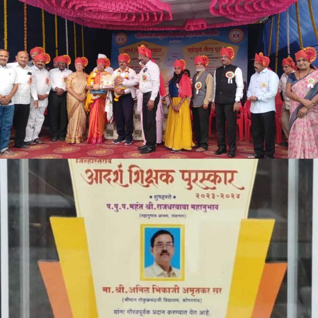 श्री.अनिल अमृतकर हे विदयालयात कला शिक्षक म्हणून कार्यरत असुन त्यांनी कला व सांस्कृतिक क्षेत्रात चांगले काम केले आहे.त्यांच्या या यशाबद्दल कोपरगांव एज्युकेशन सोसायटीचे अध्यक्ष कैलास ठोळे सचिव दिलीप अजमेरे,स्थानिक स्कुल कमिटीचे चेअरमन चंद्रकांत ठोळे, सहसचिव सचिनअजमेरे,संदीप अजमेरे,डाॕ.अमोल अजमेरे,राजेश ठोळे, आनंद ठोळे,मुख्याध्यापक मकरंद कोऱ्हाळकर,उपमुख्याध्यापक रमेश गायकवाड,पर्यवेक्षक उमा रायते, विदयालयातील शिक्षक व शिक्षकेतर कर्मचारी आदिनी अभिनंदन केले आहे.