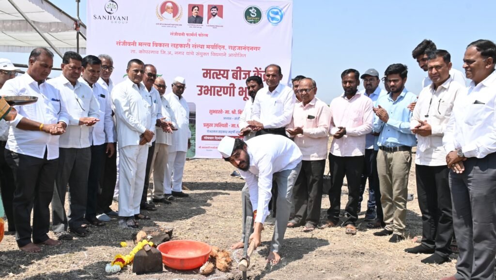 कोपरगांव:-शेतीला जोडधंदा मिळावा या उददेशांने संजीवनी मत्स्य विकास सहकारी संस्था व संजीवनी फार्मर्स फोरमच्या सहकार्याने शेतक-यांना मागणीप्रमाणे मत्स्यबीज मिळावे म्हणुन मत्स्यबीज केंद्र उभारणीचे भूमिपुजन सहकारमहर्षी शंकरराव कोल्हे सहकारी साखर कारखान्याचे अध्यक्ष विवेकभैय्या कोल्हे यांच्या हस्ते सोमवारी खिर्डीगणेश परिसरात संपन्न झाले.