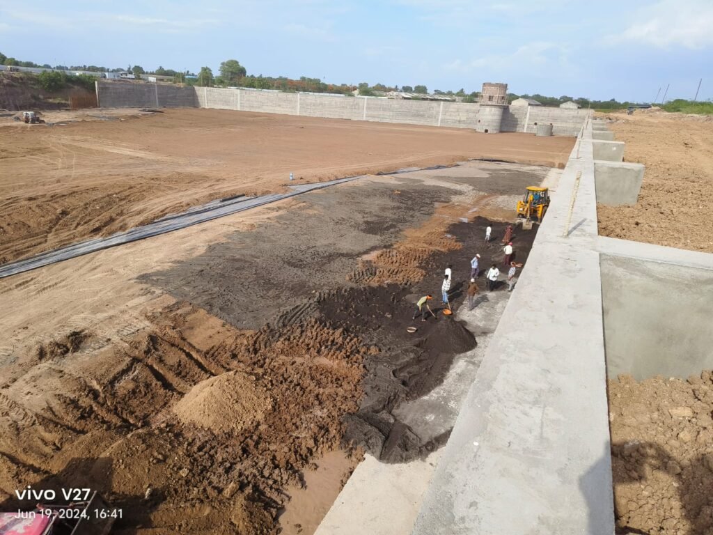 ५नंवर साठवण तळ्याच्या तळात काँक्रिटीकरणा ऐवजी खालच्या भागात काही ठिकाणी मातीची भर टाकली,त्यावर वाळू/बारीक क्रश आर्टिफिशल खडी टाकली व त्या खडीवर प्लास्टिकचा कागद टाकून वर त्यावर परत मातीचा मोठा थर दिलाय. तर काही भागांमध्ये बारीक खडीमुळे कागद फाटेल म्हणून काही भागांमध्ये बारीक खडी/वाळू न टाकता पूर्ण मातीचाच लेअर दिलेला दिसतोय.