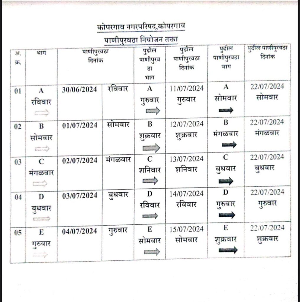कोपरगाव : – जुलै महिना सुरू झाला असून दोनच दिवसापूर्वी नगरपालिकेने ४ दिवसाआड होणारा पाणीपुरवठा हा परिपत्रक काढून १० दिवसाआड केला असून काही भागात तर तो १२ दिवसाआड होईल की काय अशी चिंता माजी.नगराध्यक्ष मंगेश पाटील यांनी आपल्या प्रसिध्दी पत्रकात व्यक्त केली आहे.