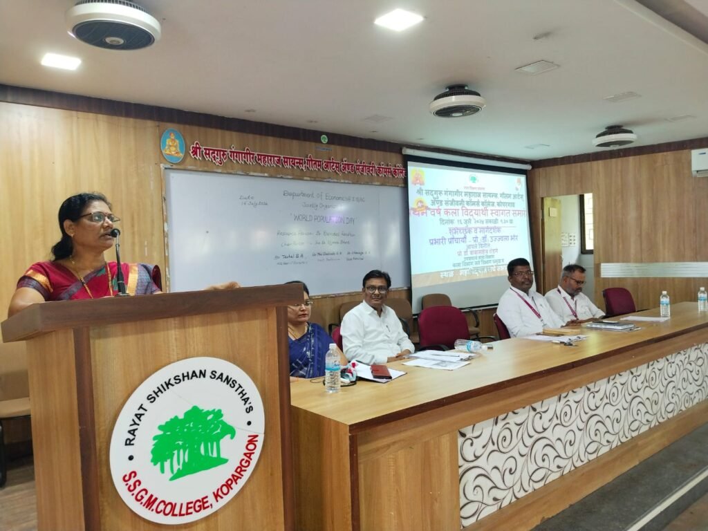 कोपरगाव -रयत शिक्षण संस्थेच्या श्री सद्गुरु गंगागीर महाराज सायन्स गौतम आर्ट्स अँण्ड संजीवनी कॉमर्स कॉलेज कोपरगाव येथे शै.वर्ष २०२४- २५ मध्ये प्रथम वर्ष कला या वर्गात प्रवेशित विद्यार्थ्यांचा स्वागत समारंभ नुकताच संपन्न झाला.या समारंभात सर्व कला विभागातील सर्व सहकारी प्राध्यापकांची ओळख विद्यार्थ्यांना करून देण्यात आली.सदर समारंभाचे अध्यक्षस्थान महाविद्यालयाच्या प्र प्राचार्या डॉ.उज्ज्वला भोर यांनी भूषविले.त्यांनी आपल्या अध्यक्षीय मनोगत महाविद्यालयातील विविध उपक्रमांची माहिती देताना सांगितले की,“या महाविद्यालयात शिक्षक आपल्या दारी,कमवा व शिका योजना, स्पर्धा परीक्षा मार्गदर्शन केंद्र, सांस्कृतिक उपक्रम,राष्ट्रीय सेवा योजना,राष्ट्रीय छात्र सेना,इत्यादी अनेक उपक्रम चालविले जातात तसेच शैक्षणिक गुणवत्तेच्या दृष्टीने महाविद्यालयातील माजी विद्यार्थी मेळावा,पालक मेळावा याचे आयोजन केले जाते.महाविद्यालयाच्या गुणात्मक वाढीसाठी सातत्याने नवनवीन उपक्रम राबवले जातात.विद्यार्थ्यांना रोजगाराच्या संधी उपलब्ध करून दिल्या जातात.हे महाविद्यालय डिजिटल क्लासरूम एल.सी.डी. प्रोजेक्टरसारख्या सुविधांनी अद्ययावत आहे.येथे मोठे क्रीडांगण, ऑडिटोरियम हॉल,पौष्टिक आणि चविष्ट आहार मिळावा या दृष्टीने उत्तम कँटीन आहे.सुरक्षित असे मुलींचे व मुलांचे वसतिगृह आहे कला विभागातील विद्यार्थ्यांसाठी पोलीस ट्रेनिंग सुरू केले आहे.”