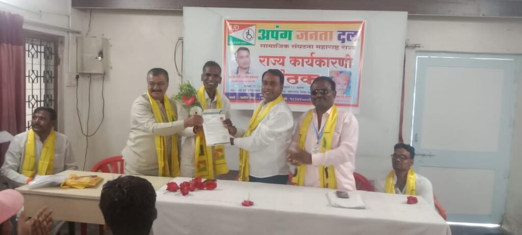कोपरगाव :- दिव्यांगावर अनेक स्तरावरुन होत असलेले अन्याय अत्याचाराच्या विरोधात लढा देण्याकरीता अपंग नेते तथा संस्थापक अध्यक्ष मा.शेख अनिस पत्रकार यांनी अपंग जनता दल सामाजिक संघटनेची महाराष्ट्र राज्यात सुरुवात करुन अपंगांवर होणारे अन्याय व अत्याचार विरोधात दिव्यांगाकरीता उभारलेल्या लढयाला बळ देण्यासाठी अपंग जनता दल सामाजिक संघटनेने महाराष्ट्र राज्य अध्यक्षपदाची मोठया अपेक्षेने व महत्वपूर्ण जबाबदारी दुसऱ्यांदा कोपरगाव येथील दिव्यांग मा.श्री.बाळासाहेब लांडे यांच्यावर दि.२५/०७/२०२४ रोजी सोपविली आहे.संघटनेच्या वतीने त्यांना नियुक्तीचे पत्र संस्थापक अध्यक्ष पत्रकार अनिसभाई शेख यांच्या हस्ते देण्यात आले आहे.दिव्यांगांचे प्रलंबीत प्रश्नांची सोडवूक संघटनेच्या माध्यमातून करतील अशी अपेक्षा व्यक्त करून संघटनेच्या वतीने त्यांचा सत्कार करून अभिनंदन करण्यात आले.