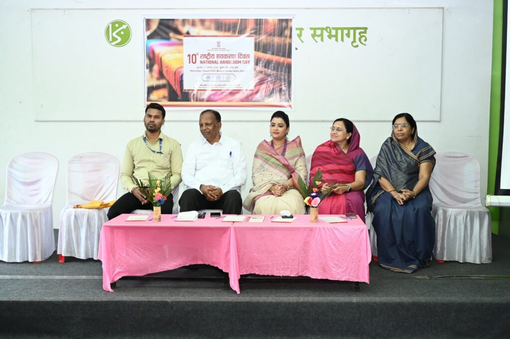 राष्ट्रीय हथकरघा दिना निमित्त आयोजित कार्यक्रमात संजीवनी स्वयं सहाय्यता महिला बचत गटाच्या अध्यक्षा रेणूकाताई विवेकभैय्या कोल्हे यांनी समता पतसंस्था हॉल येथे आयोजित १० व्या राष्ट्रीय हथकरघा कार्यक्रमाचे उदघाटन केले.यावेळी त्यांनी उपस्थितांशी संवाद साधला आणि विद्या अहिंसा हथकरघा केंद्रास भेट दिली.