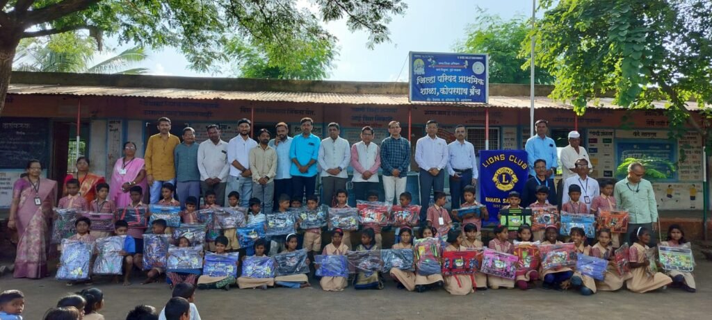 स्वातंत्र्यपूर्व काळात विद्यार्थ्यांना सुतकताई शिकवणारी ही शाळा आहे. विद्यालयातील मुख्याध्यापक श्री. सुरेशराव नळे यांनी लायन्स क्लब राहाता सह्याद्रीकडे या शाळेचा इतिहास व गरीब विद्यार्थी यांचेसाठी स्कूलबॅग देण्याची कशी गरज आहे याबाबत विनंती केली.त्यानुसार क्लबच्या वतीने साई टूर्स अँड ट्रॅव्हलचे संचालक ला.ज्ञानेश्वर नळे यांनी 47 स्कूल बॅग गरीब विद्यार्थ्यांना देवू केल्या. लायन्स इंटरनॅशनल 3234 D2 चे डिस्ट्रिक्ट ॲडिशनल कॅबिनेट ट्रेझरर ला.सुधीरजी डागा व झोन चेअरपर्सन ला.सुमित भट्टड,व चेअरपर्सन पर्यावरण तथा संस्थापक ला.विनोद गाडेकर यांचे हस्ते विद्यार्थ्यांना स्कुल बॅगचे वाटप करण्यात आले.यावेळी कार्यक्रमाचे अध्यक्ष स्थानी प्रेसिडेंट तथा चेअरपर्सन मेडिकल हेल्थ कॅम्प ला. राजेंद्र फंड हे होते.