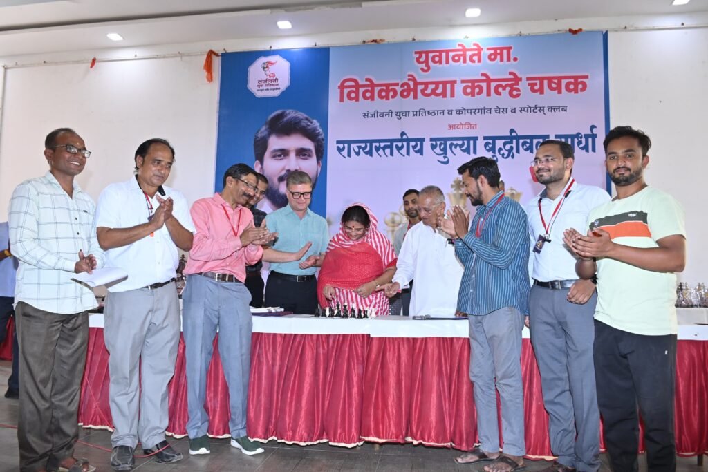 कोपरगाव : – संजीवनी युवा प्रतिष्ठान व कोपरगाव चेस आणि स्पोर्ट्स क्लब आयोजित युवानेते विवेकभैय्या कोल्हे चषक खुल्या बुद्धिबळ स्पर्धा वर्ष तिसरे उद्घाटन समारंभ मा.आ.सौ. स्नेहलताताई कोल्हे यांच्या उपस्थितीत मोठ्या उत्साहात पार पडला.मोठ्या संख्येने उपस्थित स्पर्धकांच्या उल्लेखनीय गर्दीने खेळाचे महत्व डिजिटल युगातही टिकवण्यासाठी कोपरगाव सज्ज आहे अशी भावना उपस्थितांची होती.