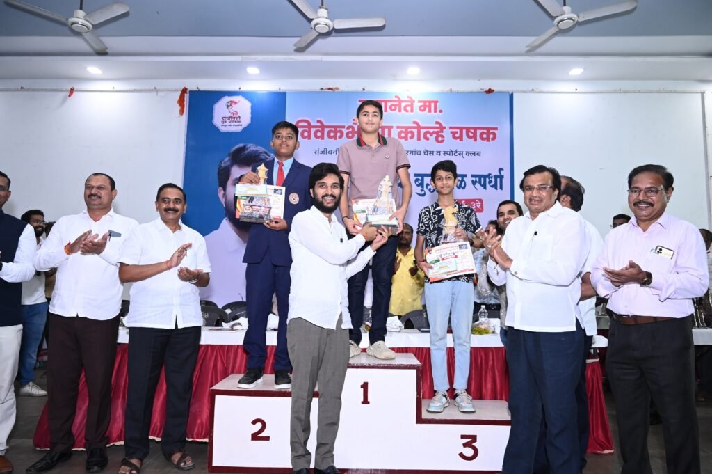 कोपरगाव : – संजीवनी युवा प्रतिष्ठान आणि कोपरगांव चेस व स्पोर्टस् क्लब आयोजित युवानेते विवेकभैय्या कोल्हे चषक, राज्यस्तरीय खुल्या बुद्धिबळ स्पर्धेचे बक्षीस वितरण पार पडले. सलग तिसऱ्या वर्षी उत्कृष्ठ आयोजन करून संयोजन समितीने खेळाडूंना व्यासपीठ उपलब्ध करून दिले आहे. युवा पिढीच्या प्रगतीसाठी सर्वोतपरी साथ देण्याची भूमिका कोल्हे यांनी ठेवल्याने चांगले व्यासपीठ खेळाडूंना मिळाले आहे.या स्पर्धेचे पारितोषिक वितरण १ सप्टेंबर रोजी सहकारमहर्षी कोल्हे कारखान्याचे अध्यक्ष युवानेते विवेकभैय्या कोल्हे यांच्या हस्ते पार पडले.यावेळी राज्याचे प्रतिनिधित्व देश आणि जागतिक पातळीवर कोपरगावमधून व्हावे अशी अपेक्षा व्यक्त केली.
