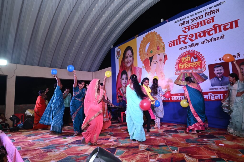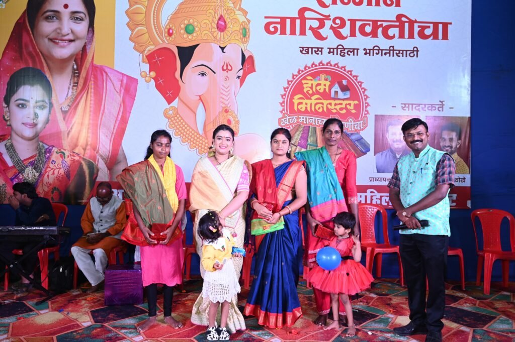 कोपरगाव : – गणेशोत्सवानिमित्त संजीवनी स्वयं सहाय्यता महिला बचत गटाने आयोजित केलेला सन्मान नारीशक्तीचा होम मिनिस्टर कार्यक्रम वारी येथे झाला.यावेळी संजीवनी महिला बचत गटाच्या अध्यक्षा सौ.रेणुकाताई कोल्हे यांच्या उपस्थितीत वारी व परिसरातील महिला भगिनी मोठ्या संख्येने हजर होत्या.आधुनिक युगात महिला गौरी देखील आहेत आणि वेळप्रसंगी दुर्गा देखील होऊ शकतात हे सिद्ध करण्याची गरज आहे.