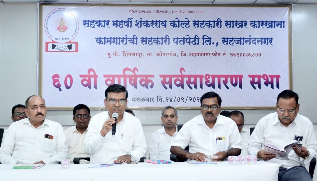 कोपरगांव : संजीवनी उद्योग समुहाचे संस्थापक माजी मंत्री स्वर्गीय शंकररावजी कोल्हे साहेब यांना विनम्र अभिवादन करून संस्थेच्या ६० व्या वार्षीक सर्वसाधारण सभेची सुरूवात झाली.