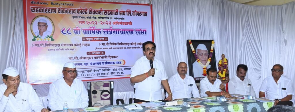 सहकाररत्न शंकरराव कोल्हे शेतकरी सहकारी संघाची ८८ वी वार्षिक सर्वसाधारण सभा रविवारी कोपरगाव येथे पार पडली त्याप्रसंगी ते अध्यक्षपदावरून बोलत होते.