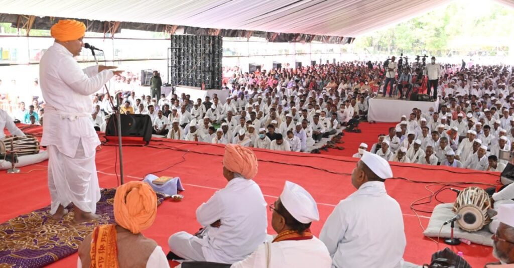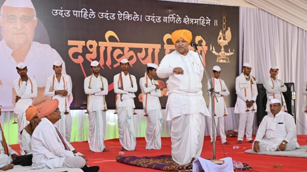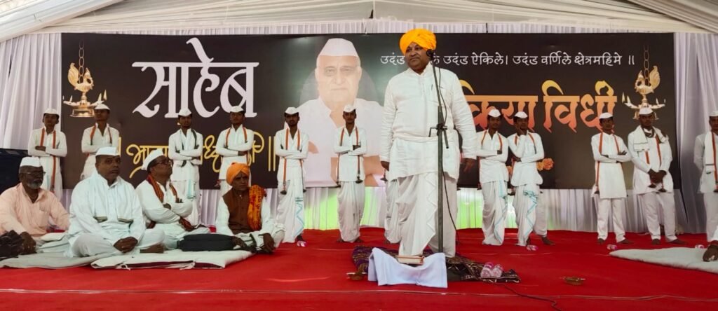 संजीवनी उद्योग समुहाचे संस्थापक माजीमंत्री शंकरराव कोल्हे यांच्या दशक्रिया विधीनिमीत्त संजीवनी अभियांत्रीकी महाविद्यालयाच्या मैदानावर श्रध्दांजली प्रवचन देतांना ह.भ.प.उध्दव महाराज मंडलिक