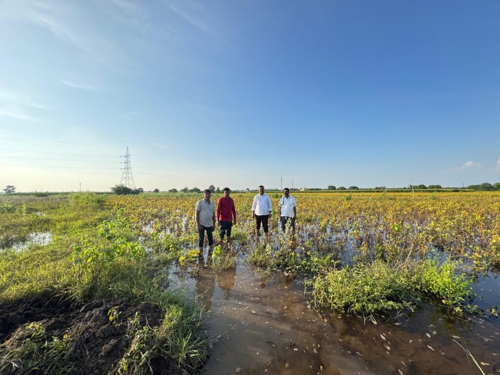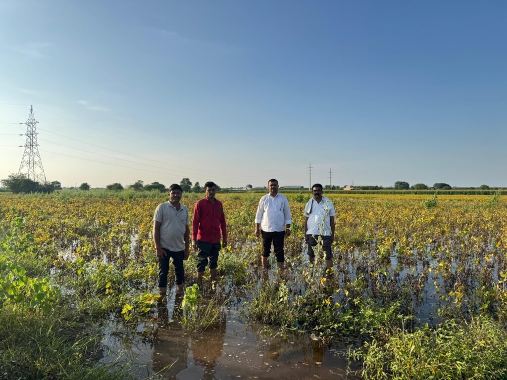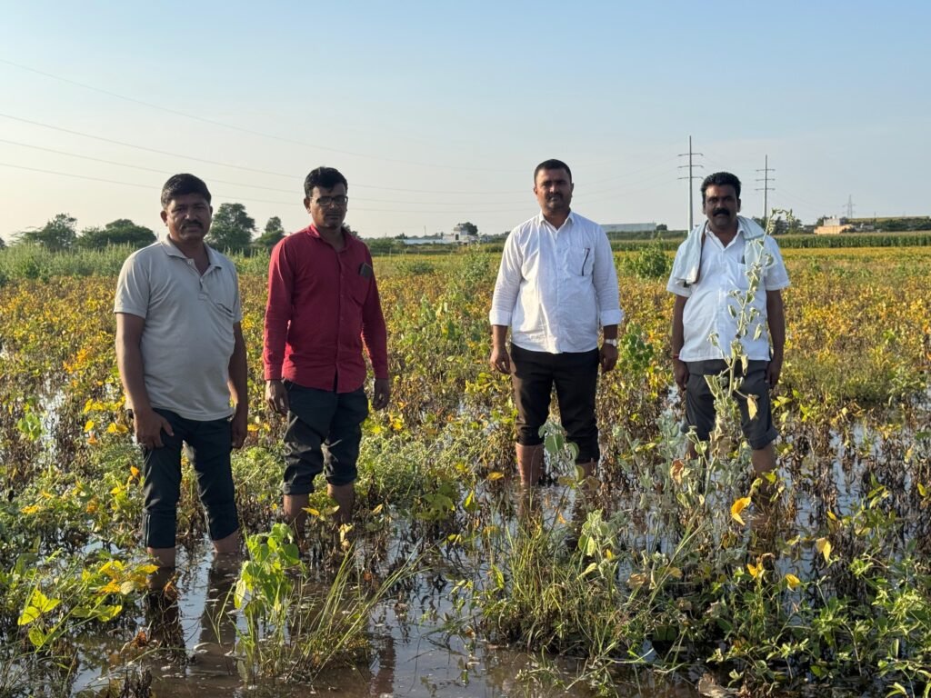 कोपरगाव : – नुकतेच झालेल्या अतिवृष्टीमुळे कोकमठाण गावातील अनेक शेतकऱ्यांचे सोयाबीन,मका, घास आदींसह अनेक पिके पाण्याखाली गेली आहेत.शेतामध्ये मोठ्या प्रमाणावर पाणी साचून त्याचा निचरा न झाल्याने डोळ्यादेखत हाता तोंडाशी आलेली पिके नासधूस होताना बघावी लागण्याची दुर्दैवी वेळ शेतकरी बांधवांवर आली आहे.सदर नुकसानीचे पंचनामे वेळीच होणे गरजेचे होते मात्र अद्यापही प्रशासनाने पंचनामे केलेले नाही अशी स्थानिक शेतकऱ्यांनी तीव्र नाराजी व्यक्त केली आहे.