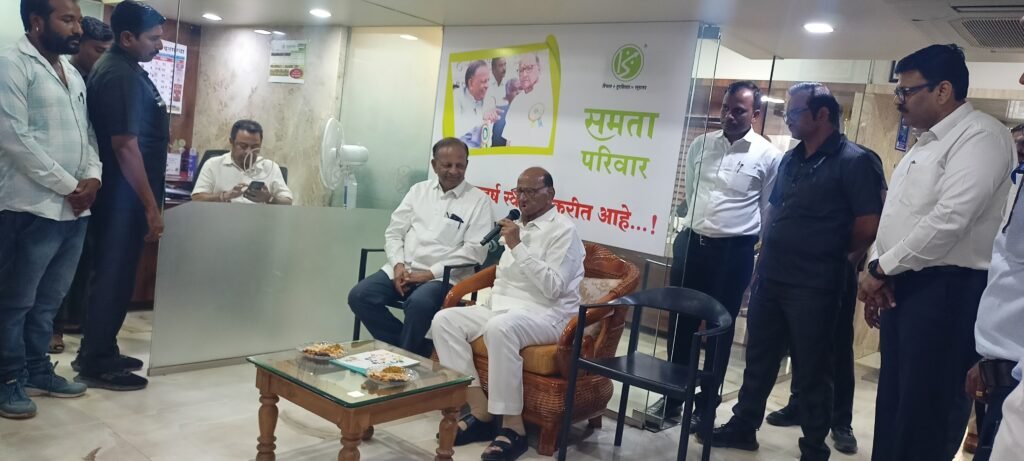 कोपरगाव मतदार संघातील विधानसभा निवडणुकीचे उमेदवार संदीप वर्पे यांच्या प्रचारासाठी मा. शरदचंद्रजी पवार कोपरगाव तालुक्यात आले असता त्यांनी जाणीवपूर्वक काका कोयटे यांचे गाव का ? अशी विचारणा करत स्वतःहून समता पतसंस्थेला भेट दिली असता, महाराष्ट्रातील अग्रगण्य समता नागरी सहकारी पतसंस्थेच्या मुख्य कार्यालयाच्या भव्य इमारतीचे ‘सहकार मंदिर’ असे नामकरण मा. शरदचंद्रजी पवार यांच्या हस्ते करण्यात आले.त्या वेळी ते बोलत होते.