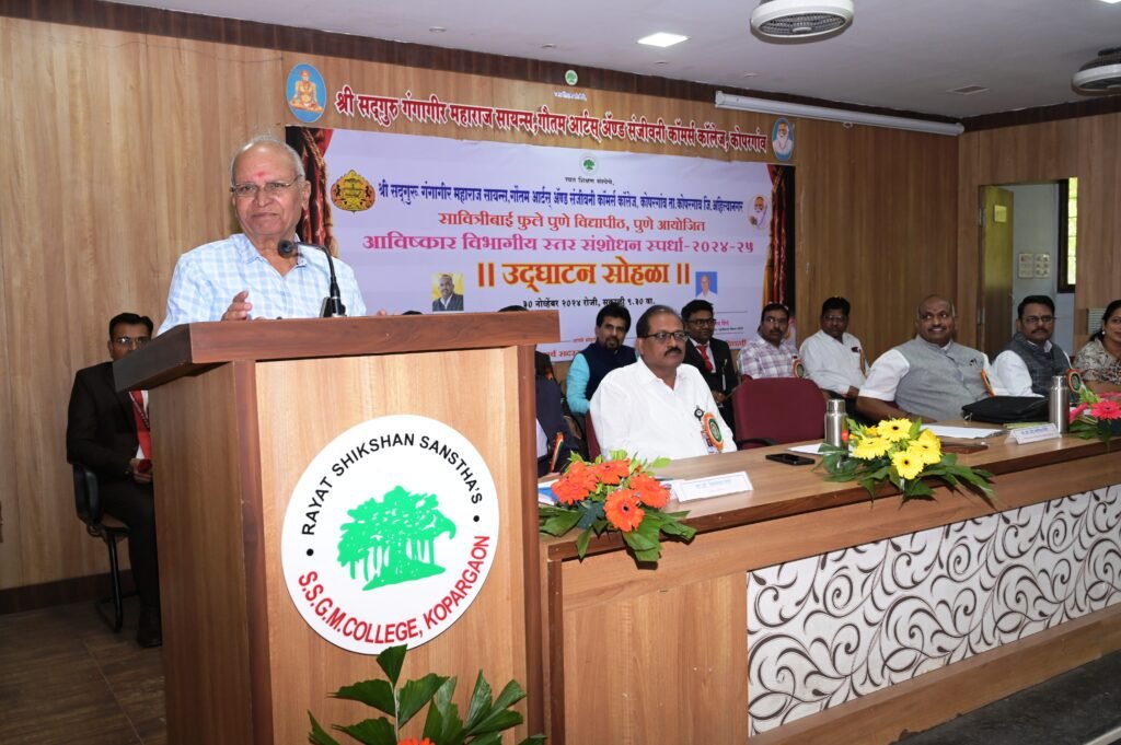 कोपरगाव :- रयत शिक्षण संस्थेच्या श्री सद्गुरु गंगागीर महाराज सायन्स, गौतम आर्ट्स अँड संजीवनी कॉमर्स कॉलेज,कोपरगाव येथे ‘अविष्कार’ विभागीय संशोधन स्पर्धेचे आयोजन केले होते.या स्पर्धेच्या उद्घाटनाच्या अध्यक्षस्थानी रयत शिक्षण संस्थेचे व्हा.चेअरमन आणि महाविद्यालय विकास समितीचे चेअरमन अँड. भगीरथ शिंदे हे होते.ते आपल्या अध्यक्षीय मनोगतात म्हणाले, “संशोधनामुळे ज्ञानाचे प्रदर्शन होते व कल्पना तथ्यांसह जागृत होतात.या स्पर्धेत विद्यार्थी संशोधक नाविन्यपूर्ण संशोधन प्रकल्प सादर करणार आहेत. हेच संशोधन समाज आणि विद्वानांना विचार करण्यास आणि विविध समस्यावर उपाय शोधण्यासाठी सक्षम बनवते.या स्पर्धेमुळे ग्रामीण आणि शहरी विद्यार्थ्यांना आपले संशोधन विचार मांडण्याची ही सुवर्णसंधी आहे”.सावित्रीबाई फुले पुणे विद्यापीठात २००६ पासून महाविद्यालयीन विद्यार्थ्यांच्या संशोधन वृत्तीला चालना देण्यासाठी अविष्कार, अन्वेषण इ.संशोधन विषयक स्पर्धांचे आयोजन केले जाते.