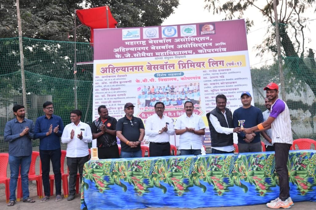 कोपरगाव : – अहिल्यानगर बेसबॉल असोसिएशन व के.जे.सोमैया महाविद्यालय कोपरगाव यांच्या संयुक्त विद्यमानाने आयोजित अहिल्यानगर बेसबॉल प्रीमियर लीग पर्व -१ले आयोजन शनिवार दिनांक ३० नोव्हेंबर व रविवार दिनांक ०१ डिसेंबर २०२४ रोजी के.बी पी. विद्यालय येथे करण्यात आले होते.