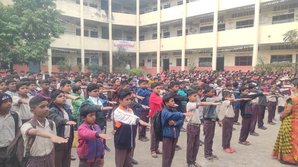 आज नववर्षाच्या सुरुवातीला श्रीमान गोकुळचंदजी विद्यालयात कला व क्रीडा विभागातील शिक्षकांच्या कल्पनेतून विद्यार्थ्यांकडून फॉर्मेशन प्रकारात २०२५ या आकारात उभे राहून या वर्षात किमान नवीन पंचवीस प्रकल्प शिकण्याचा संकल्प विद्यार्थ्यांनी सोडला.याप्रसंगी विद्यालयाचे मुख्याध्यापक रमेश गायकवाड, उपमुख्याध्यापक रघुनाथ लकारे,पर्यवेक्षक अनिल अमृतकर आणि सर्व शिक्षक या उपक्रमात सहभागी झाले होते.